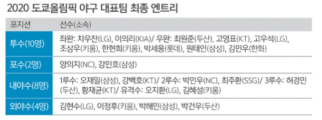 이번에 발표된 명단은 최종 엔트리 선발을 위한 사전 등록 명단으로, 이 선수들 내에서만 올림픽 최종 엔트리 구성이 가능하다.